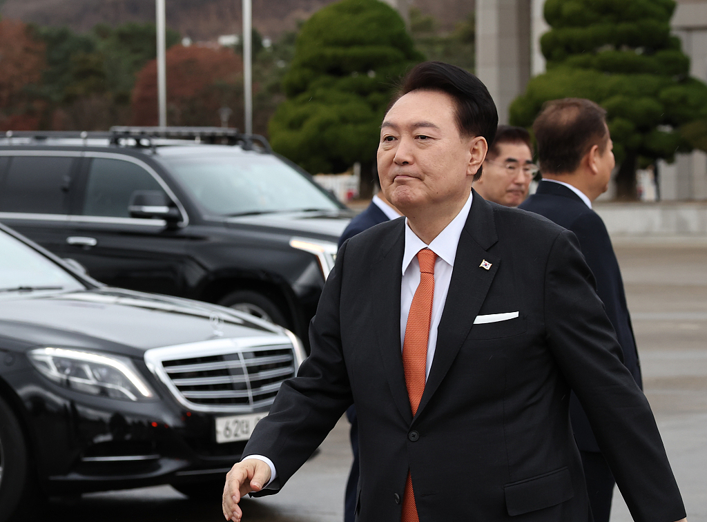 当地时间2023年12月11日,韩国首尔,韩国总统尹锡悦启程对荷兰进行国事访问。(视觉中国)