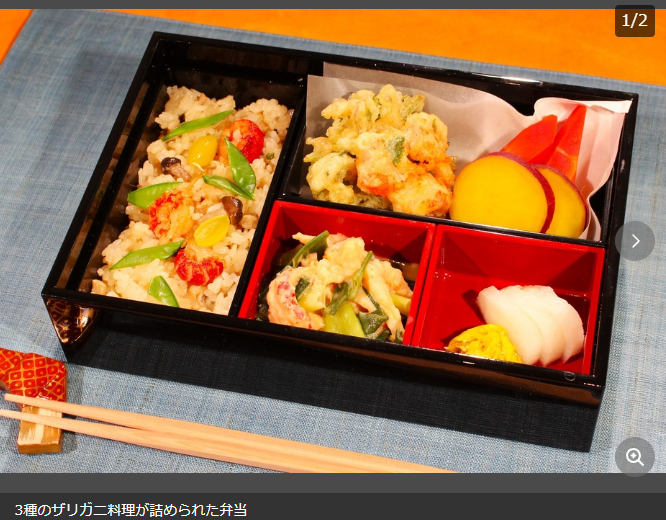 柳原料理教室负责人柳原尚之就尝试做了小龙虾料理。三道菜分别是:小龙虾什锦饭、小龙虾蔬菜天妇罗和胡麻酱汁凉拌小龙虾,这一盒看起来与日式便当没什么区别。口感丰富,美味可口。如果不说,很多人都认不出这是小龙虾。柳原指出了小龙虾的优缺点:“它很适合用油烹饪,但是,它的壳真的很难剥。”由于一只小龙虾的肉量很少,因此小龙虾料理是一个值得研究的课题。