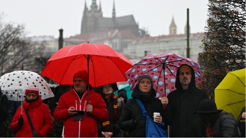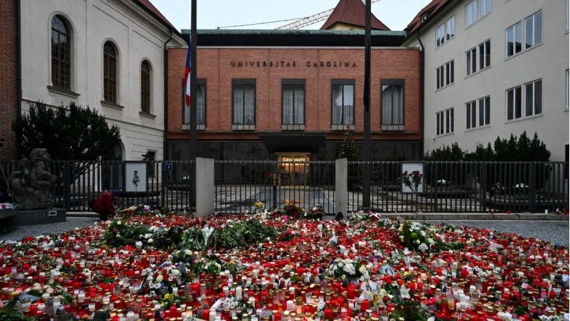 报道称,捷克全国各地的民众于中午时分在雨雪天气中驻足,为遇难者默哀一分钟。一些哀悼者们带着蜡烛和鲜花来到查理大学艺术学院外的临时纪念点,以及位于市中心附近的查理大学总部。