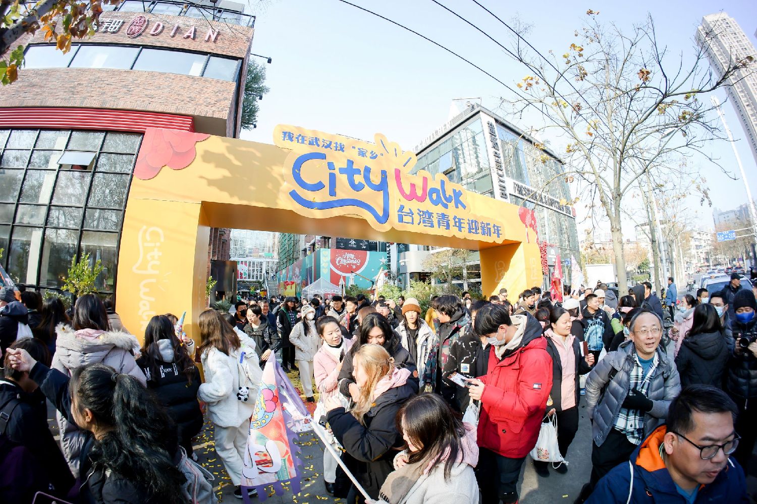 12月23日,130余名台青在武汉City walk迎新年。图为活动现场。(图/中新社)