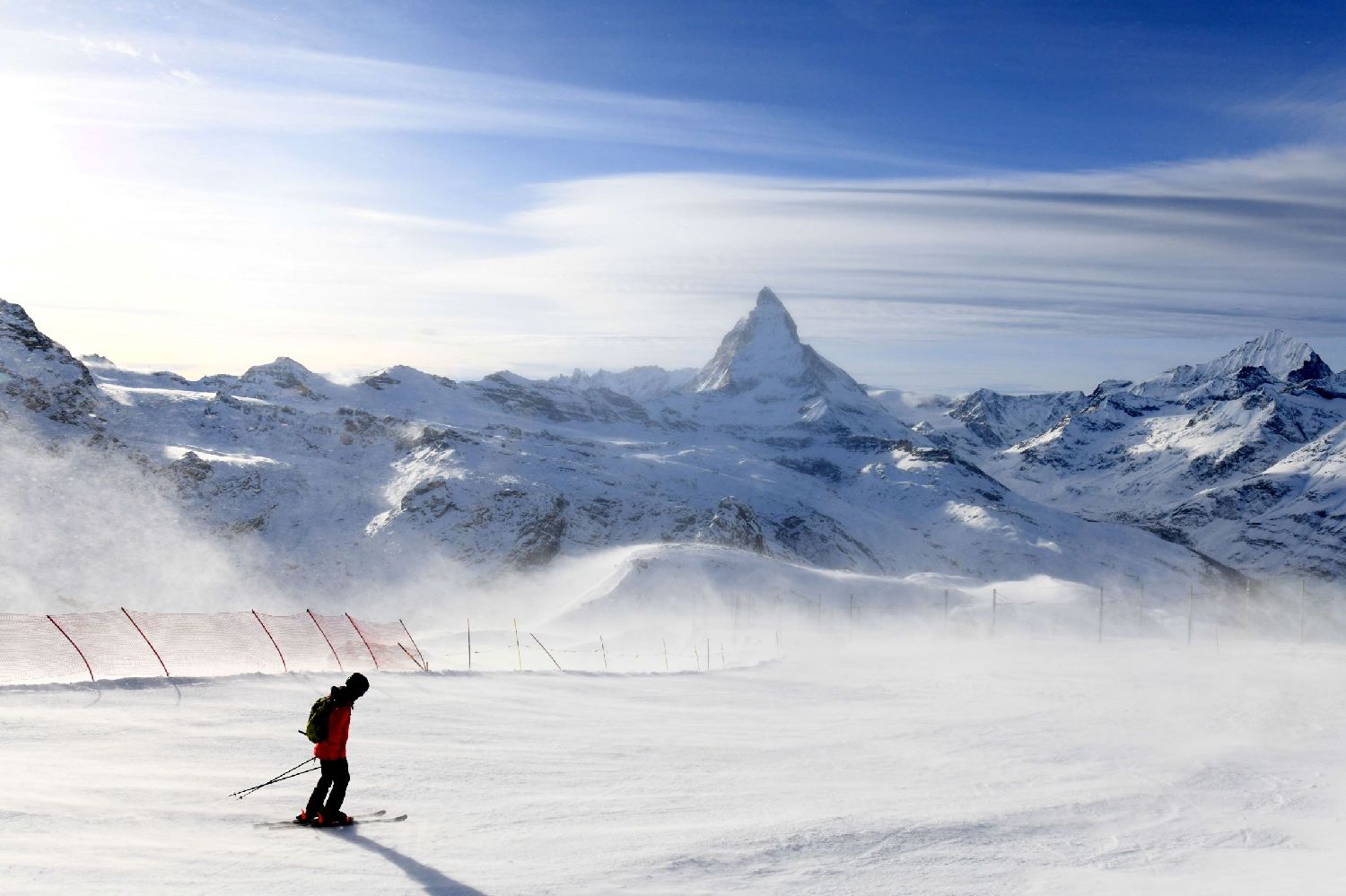 图为12月10日,一名滑雪爱好者在瑞士采尔马特滑雪。(图/新华社)