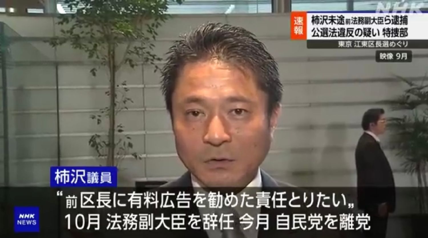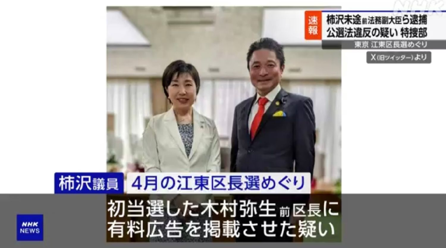 (日本头条讯)东京地方检察厅28日以涉嫌在2023年4月东京江东区区长选举中贿赂区议员等人,违反《公职选举法》为由,逮捕了前法务副大臣柿泽未途和四名秘书。