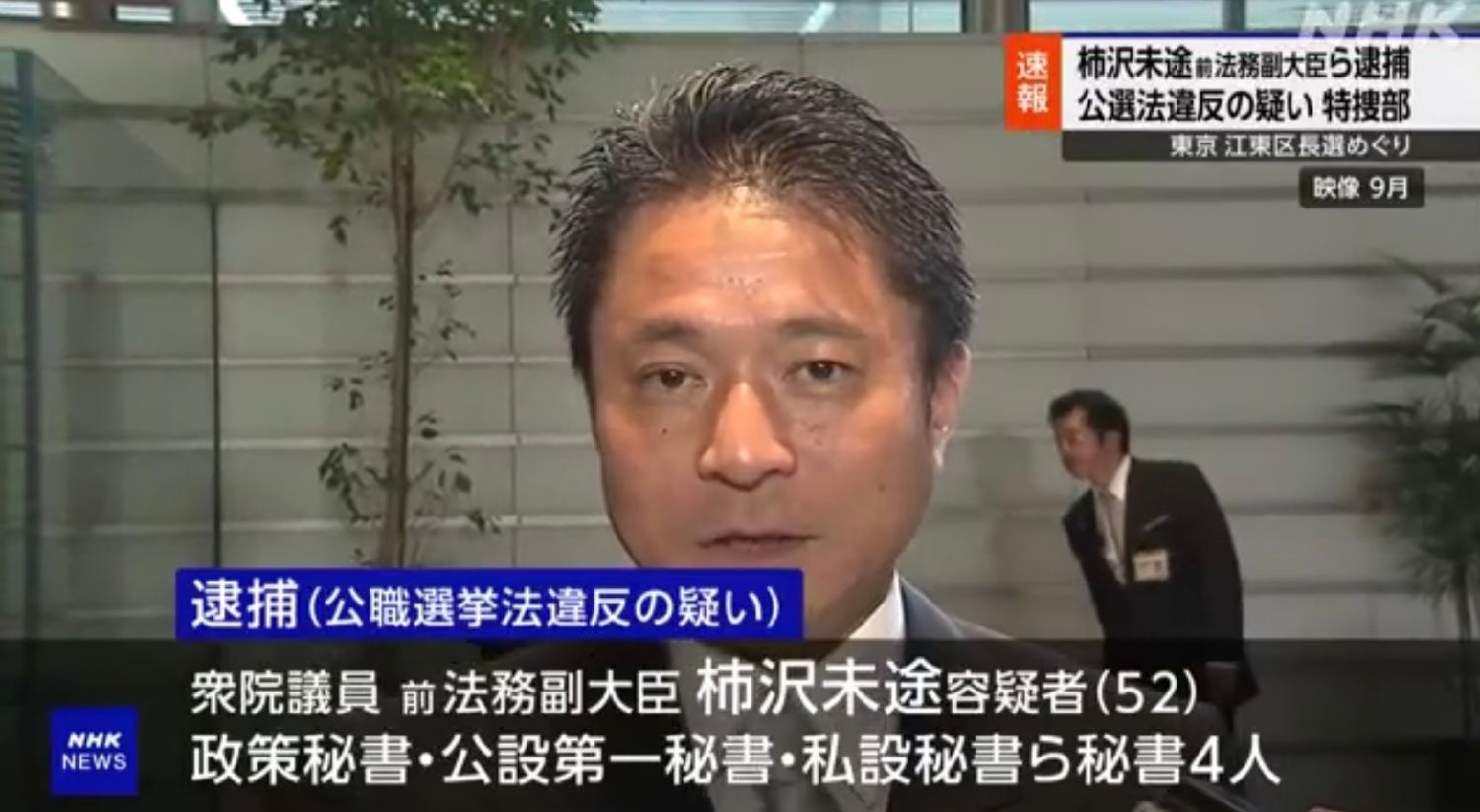 前法务副大臣柿泽未途等五人涉嫌选举贿赂被正式逮捕