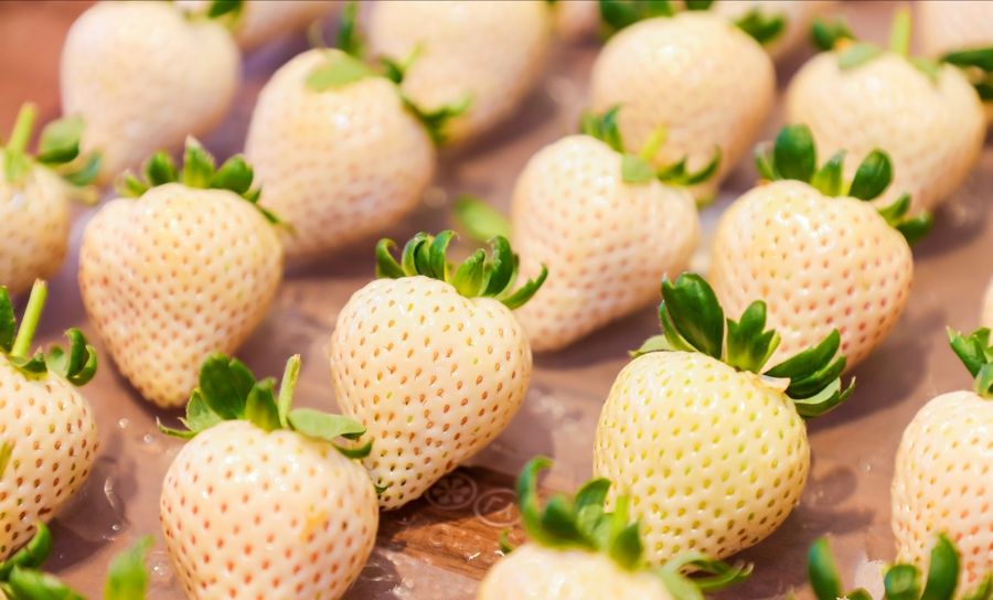 由江苏省农科院培育而成的白色草莓——“紫金香雪”,冬季鲜果上市时间早,可保证消费者在11月品尝到头茬成熟的草莓果实,口感清甜,是白果草莓里成熟期早、果实硬度高、着色均一稳定的品种之一。