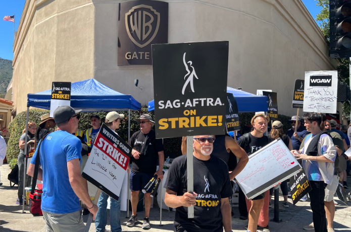 2023年7月14日,加州洛杉矶,好莱坞罢工者的背影。(图/中新社)