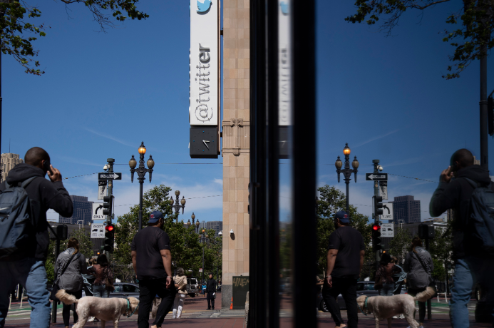 2023年7月24日,加州旧金山,推特总部大楼前的背影。(图/中新社)