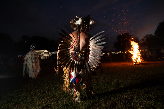 2023年7月29日,纽约皇后区,参加“帕瓦”活动印第安人的背影。(图/中新社)