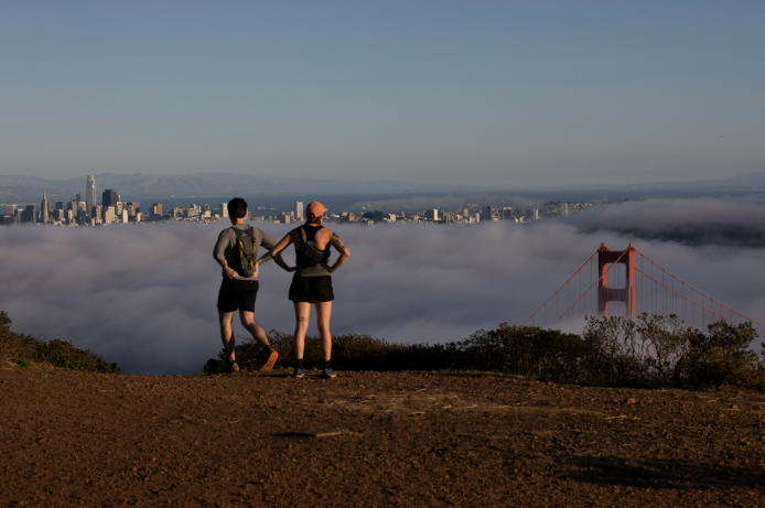 2023年10月17日,加州旧金山,眺望金门大桥的背影。(图/中新社)