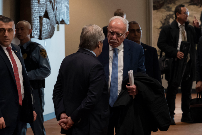 2023年11月29日,纽约联合国总部,联合国秘书长古特雷斯的背影。(图/中新社)