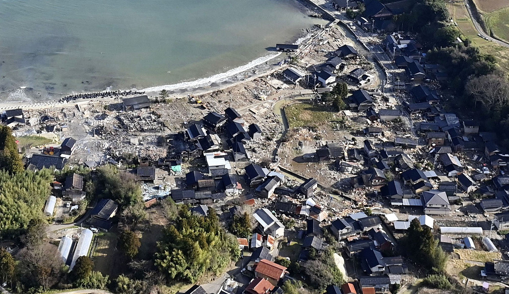 当地时间1月2日,地震引发的海啸导致诺藤(Noto)地区的沿海居民区遭受破坏。(视觉中国)