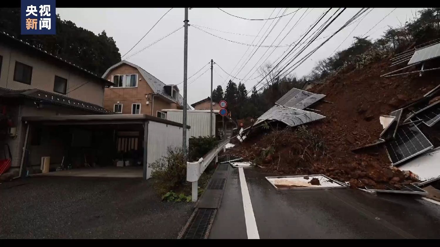 在日本石川县的穴水町,部分区域在本次强震中发生了比较严重的山体滑坡。(图/中国央视新闻)