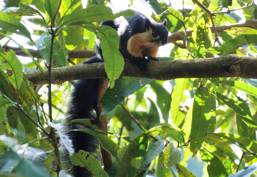 日前,有摄影爱好者在云南省德宏州梁河县勐养镇拍到国家Ⅱ级重点保护野生动物巨松鼠的影像。(图/北京《科技日报》)