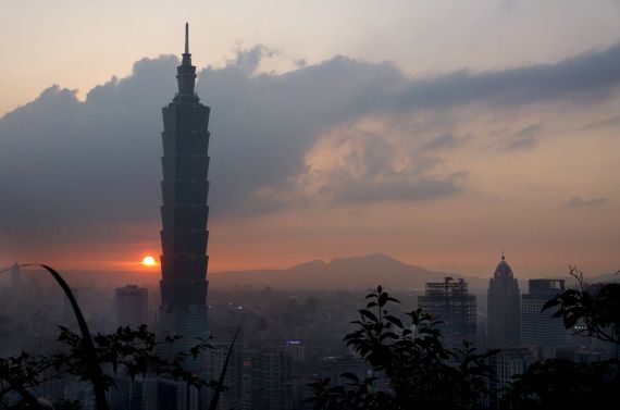 夕阳映照下的台北101大楼。(图/新华社)