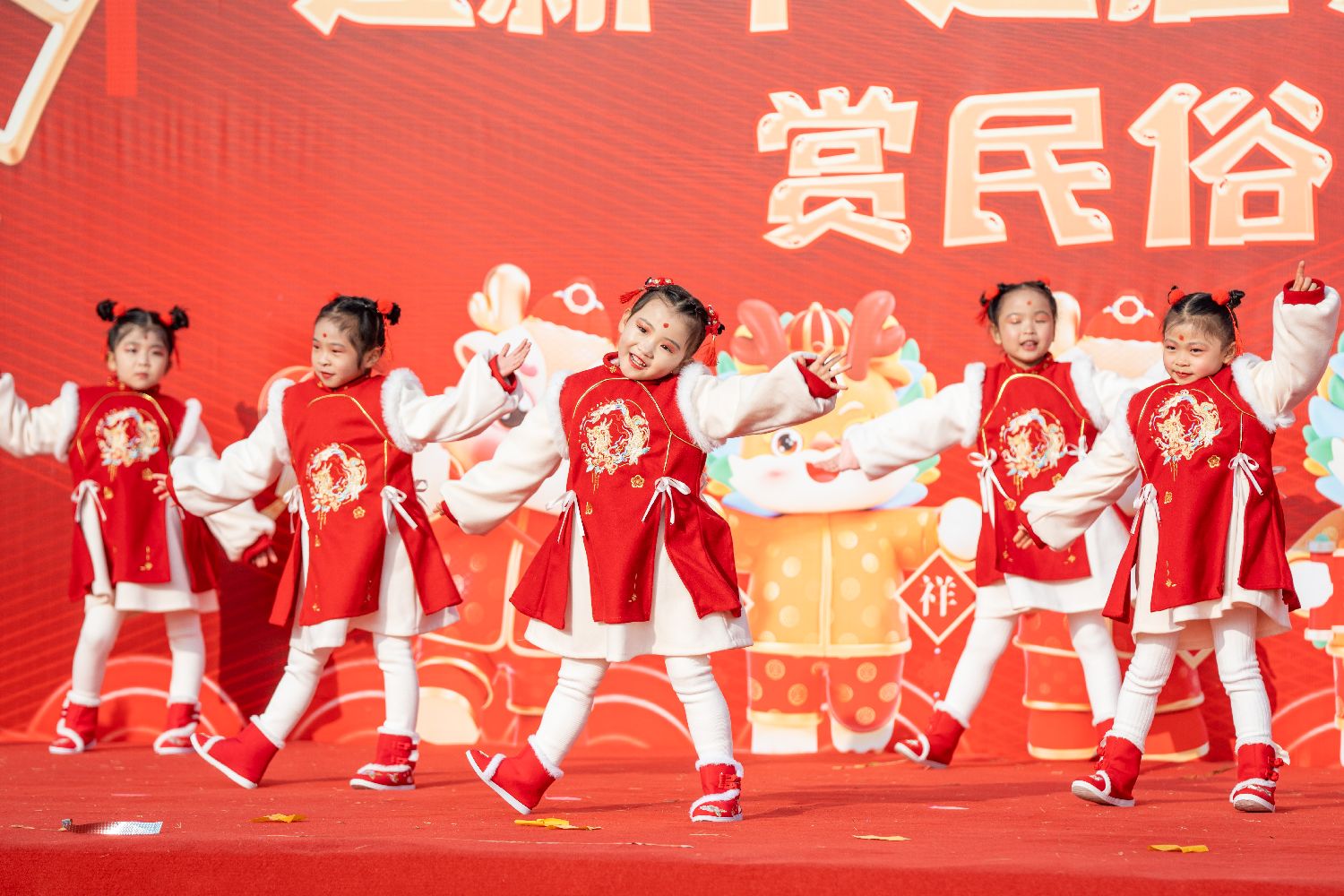 1月11日,小朋友们在庙会上进行舞蹈表演。(中新社)