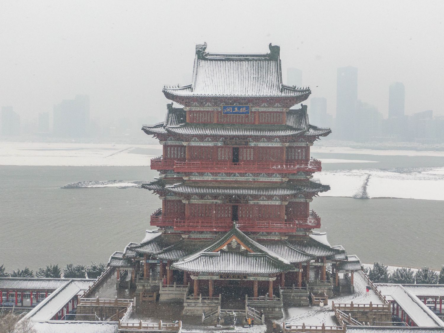 1月22日,位于赣江之畔的江南名楼滕王阁在风雪中更显古韵。(图/中新社)
