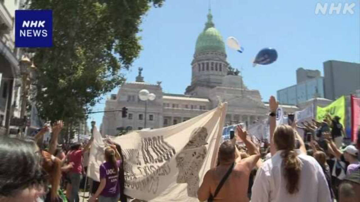 在首都布宜诺斯艾利斯,数万名工会成员进行了示威游行后,在国会前举行了大规模的集会,高呼抗议口号。一名参与集会的女性教师表示,“米莱正试图私有化一切,出卖国家”,以此表达她的愤慨。