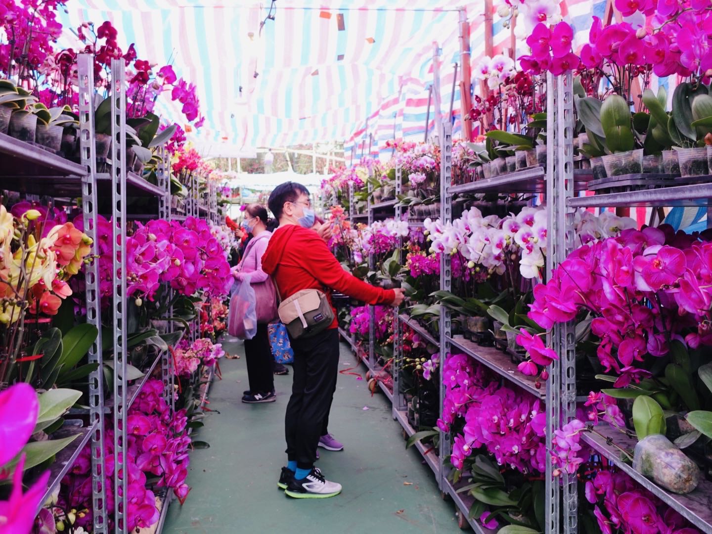 图为市民在年宵市场摊位上挑选心仪的年花。(图/中新社)