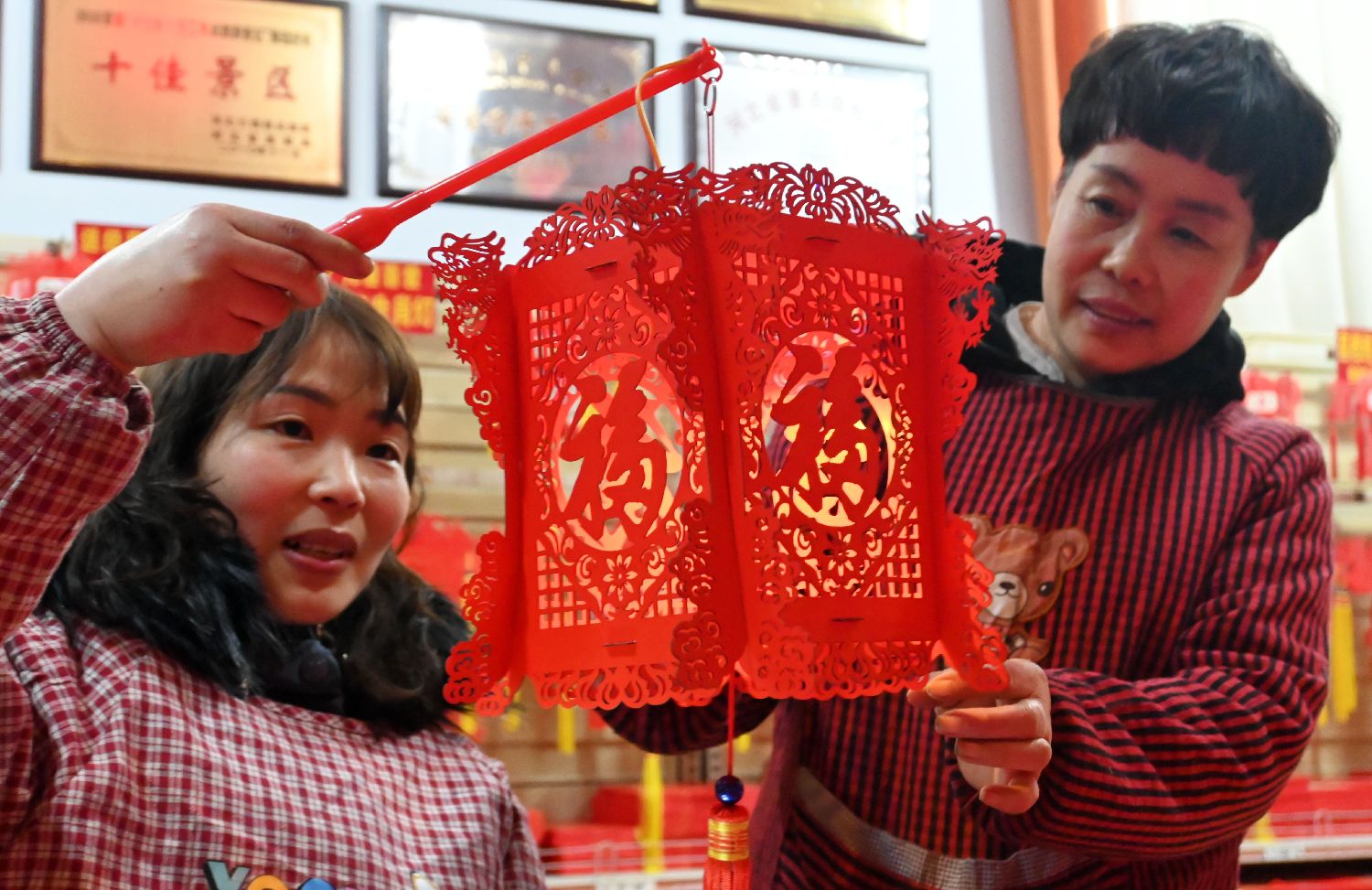 “今年涉及龙题材的比较多,我们设计的‘龙凤呈祥’‘双龙戏珠’等图案的纸雕宫灯,基本上都是供不应求。”河北省工艺美术大师、蔚县剪纸手艺人史有全说,纸雕宫灯不仅是蔚县剪纸艺术与藁城宫灯造型艺术的结合,还借鉴了中国传统建筑艺术的榫卯原理,非遗技艺相结合后,创造出的纸雕宫灯文化味足、趣味性浓。