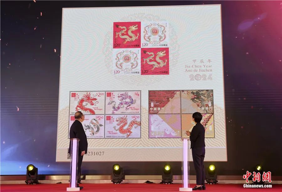 单霁翔:2024年1月初,中国邮政发行了《甲辰年》特种邮票,图案汲取了中国历代经典龙形象中的文化基因,结合生肖文化特征和邮票艺术特点,色彩喜庆吉祥,寓意祥瑞美好。