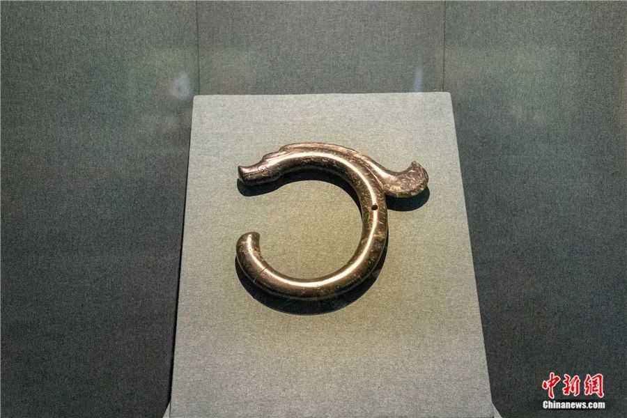 在中国国家博物馆“玉出红山——红山文化考古成就展”上拍摄的碧玉“C形龙”。田雨昊摄
