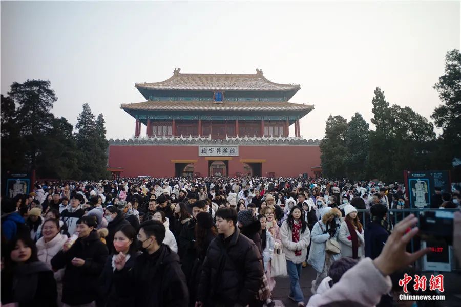 2023年12月30日,元旦假期首日,游客们走出故宫博物院。盛佳鹏摄