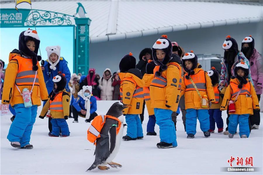 11名来自广西南宁的小朋友来到黑龙江哈尔滨极地公园参观游览。这11名小朋友因身穿橘色羽绒服的可爱模样,被网友亲切称为“小砂糖橘”。赵宇航摄