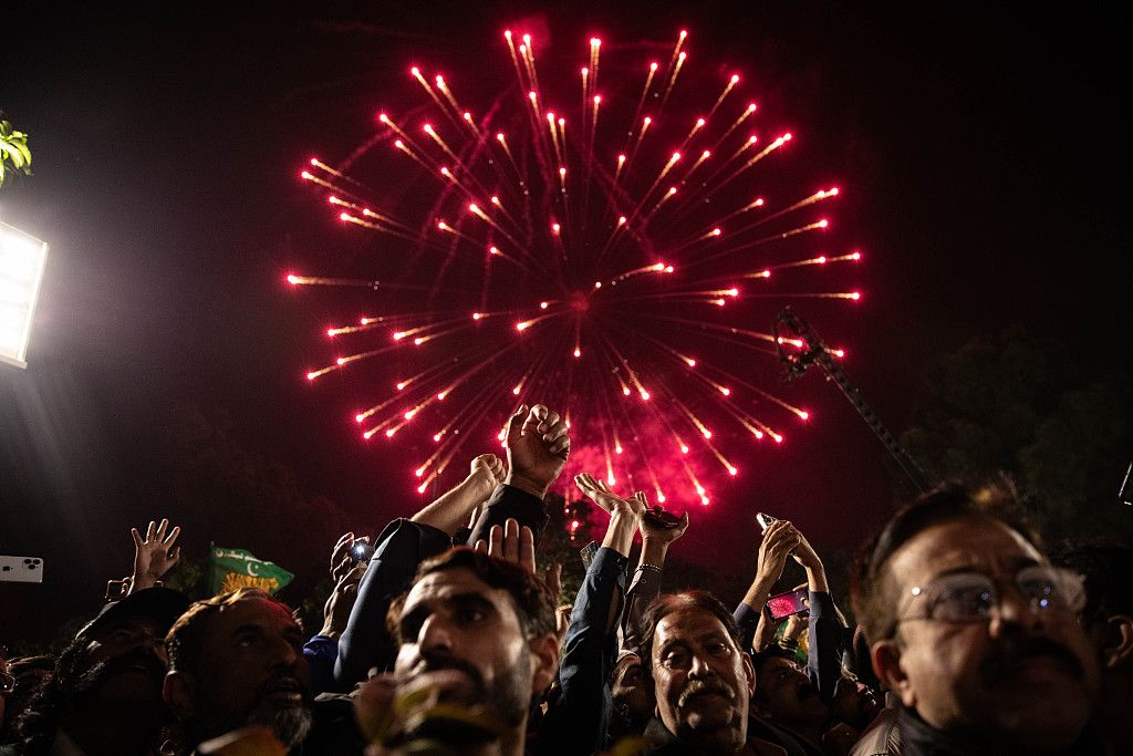 巴基斯坦前总理纳瓦兹·谢里夫的支持者庆祝胜利。