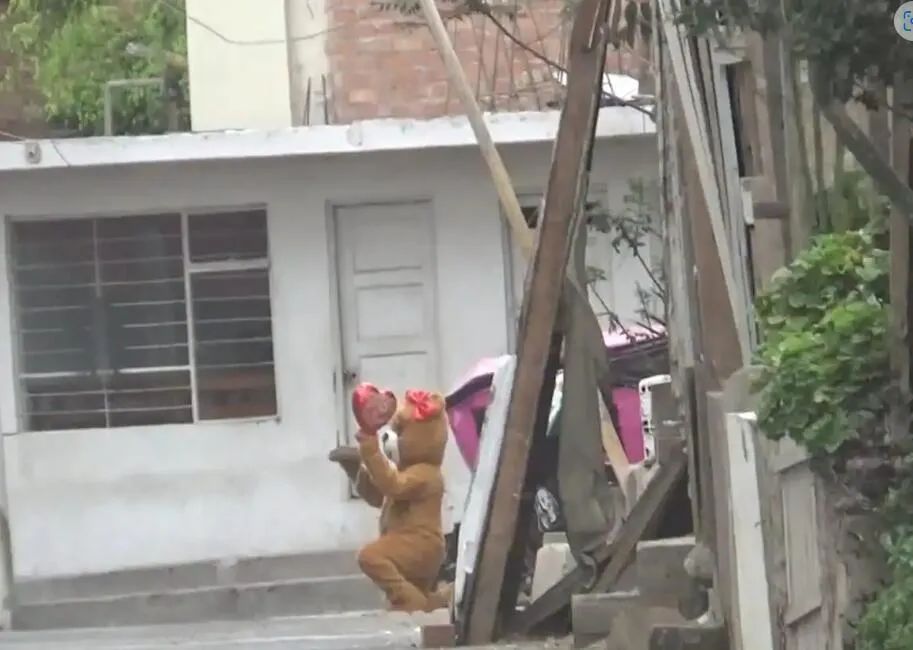 外媒:秘鲁警察在情人节乔装成“告白小熊”,成功抓捕一名毒贩