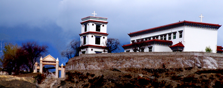 西藏昌都市芒康县盐井天主教堂外景。(图/拉萨中国西藏网)