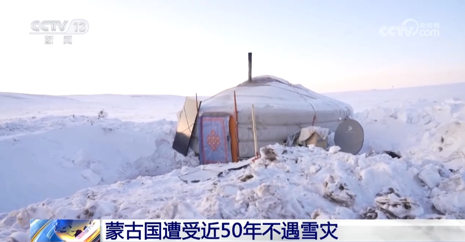 蒙古国遭受近50年不遇雪灾。(图/中国央视新闻视频截图)