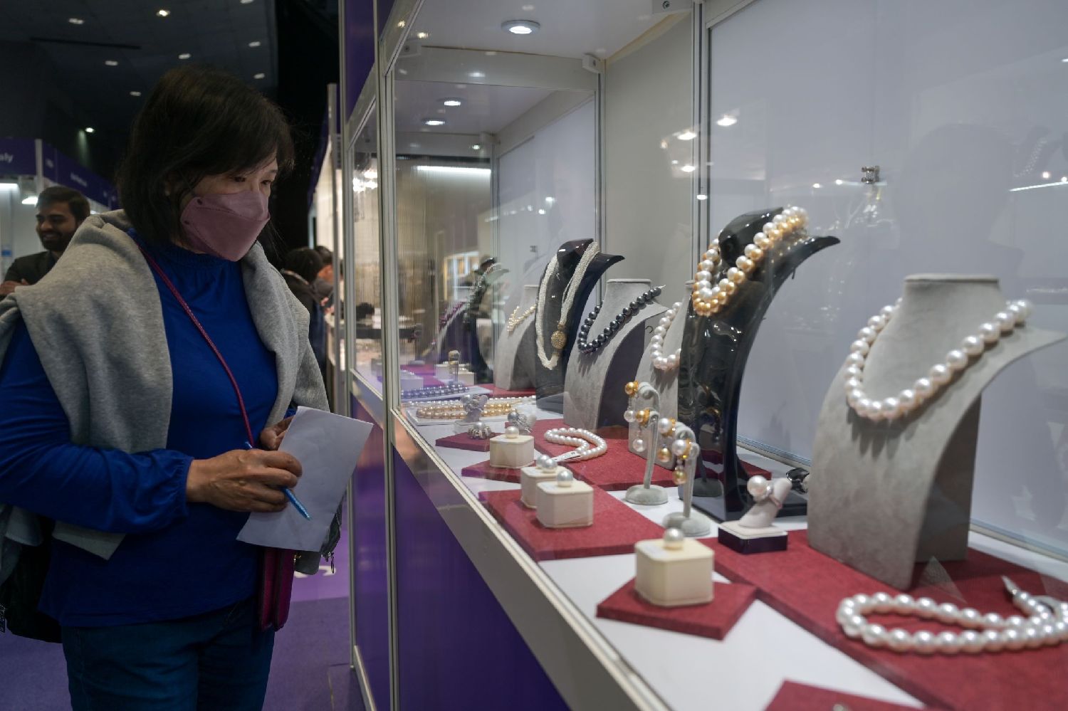 有“中国珍珠之乡”之称的浙江省诸暨市山下湖镇珍珠企业团,今年再次到港参展。该参展团位于展区中心位置,有51家参展企业、63个展位,另有300多家企业来港采购。当天,山下湖淡水珍珠吸引了一众国际买家选购,场面热闹。另外,大会今年还增设河南馆,吸引了一批来自河南的企业参展。