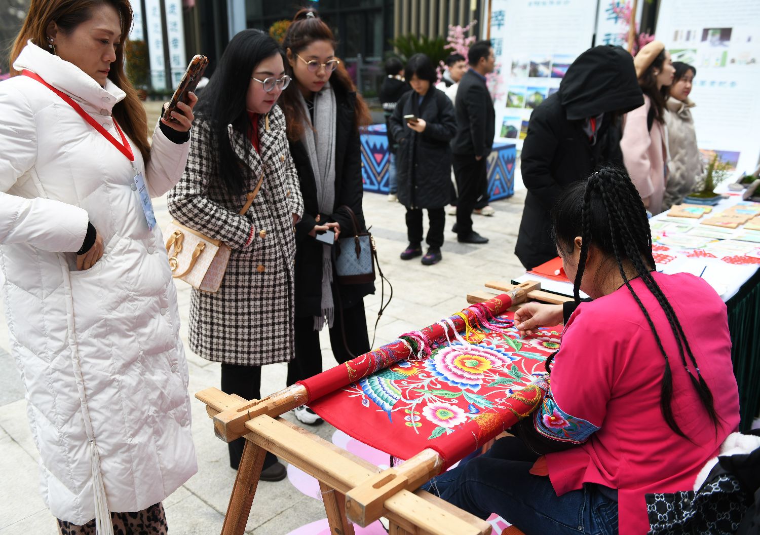 重庆酉阳2月29日举办非遗文创展,酉州苗绣、西兰卡普、木叶吹奏等一一亮相,展现出少数民族的独特风情。