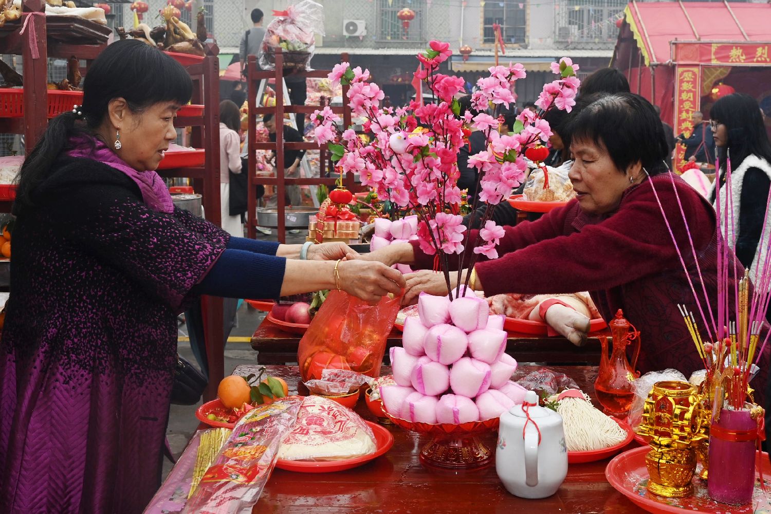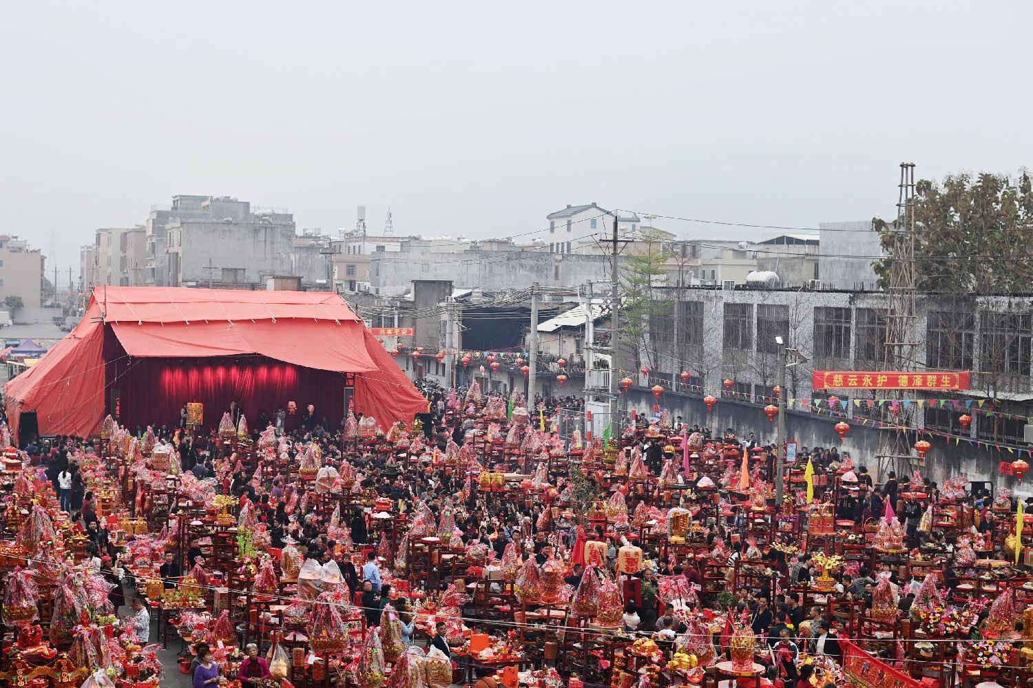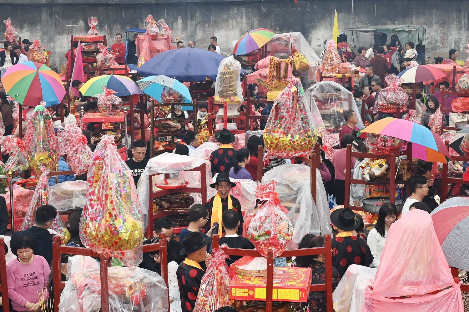 3月5日,农历正月廿五,广东省揭阳市砲台镇石牌村举行“摆粿架”民俗活动。