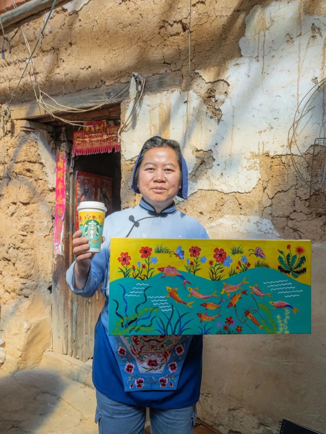 作为一名过过苦日子的农民,郗发显选择用乐观作为自己的人生底色。在他的画作中,处处带着能量感和他的人生态度:越勤劳,汗水换来的幸福越有价值。(星巴克中国官方微博)