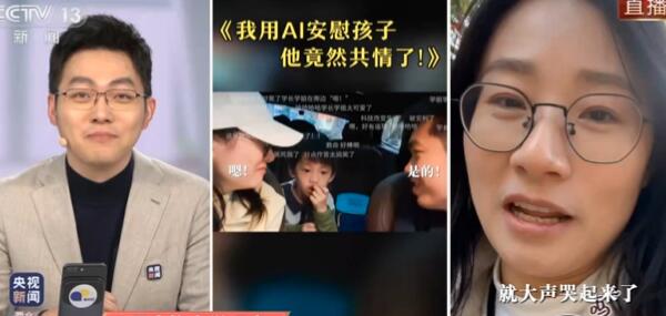孩子摔倒,被边上的一位家长嘲笑,哭得停不下来,你咋办?这对“90后”父母,搬出了AI。(图/中国央视新闻视频截图)