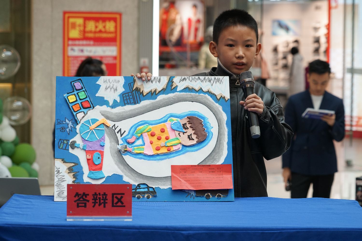 图为学生介绍自己的科学幻想画《多功能噪音消除器》。 (中新社)