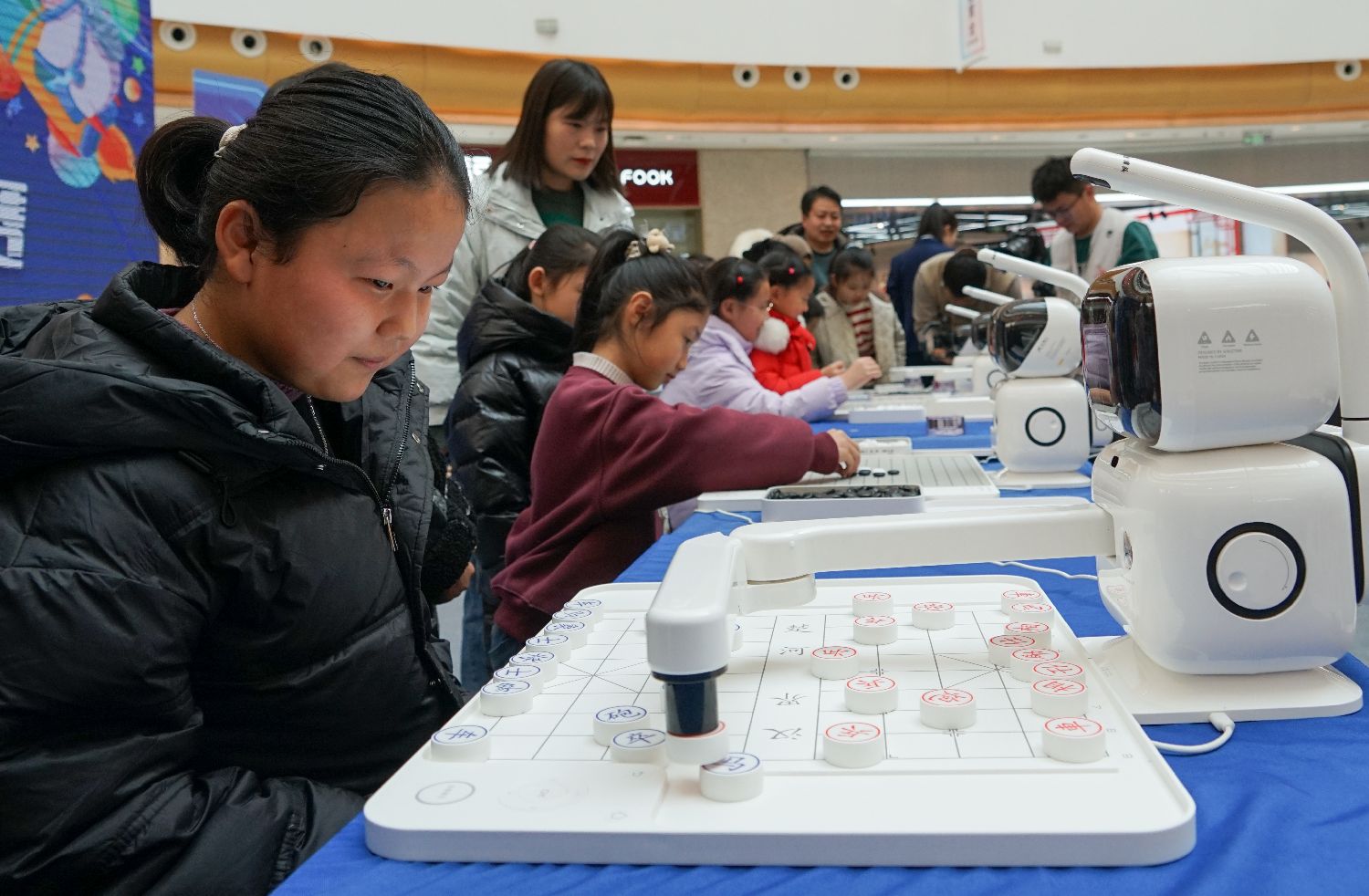 青海省西宁市城东区第十四届青少年科技创新比赛3月10日举行,近200件创意新奇的科技小制作和天马行空的科学幻想画展现青少年在科学探究和创新实践中的奇思妙想,同时,现场的机器人任务赛、三阶魔方比赛、AI下棋机器人人机对战等活动吸引学生们观看、讨论和参与。