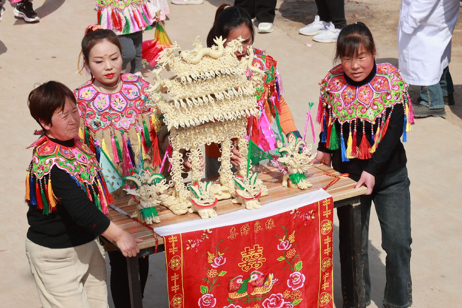 图为阿寿村内的花馍队伍。(中新社)