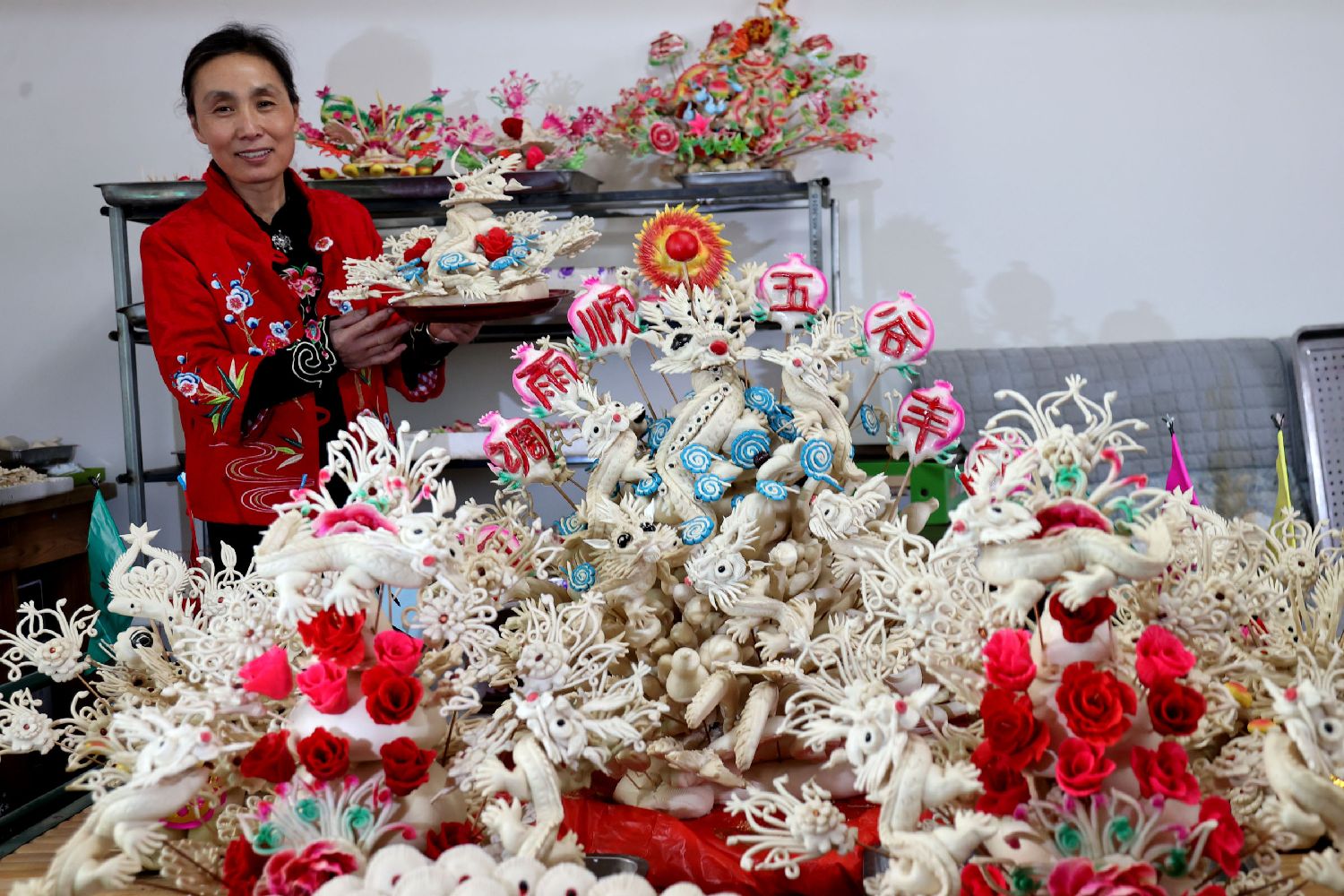 图为“风调雨顺,五谷丰登”花馍。(中新社)