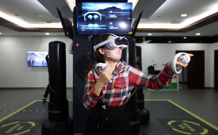 学生戴上VR眼镜,尽情体验登山、骑行、滑雪、划船、拳击等课程。数字体育课程结合了体育科学与人工智能、数据分析和健康管理,是一套全新的体育锻炼系统,大大提高了锻炼趣味性和锻炼效果。(北京《新京报》)