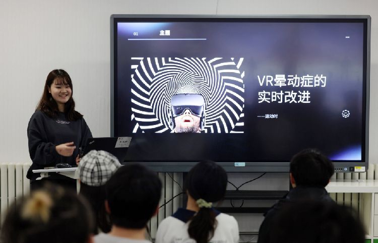 学生展示自己的"数字体育"课程主题分享和研究方向。(北京《新京报》)