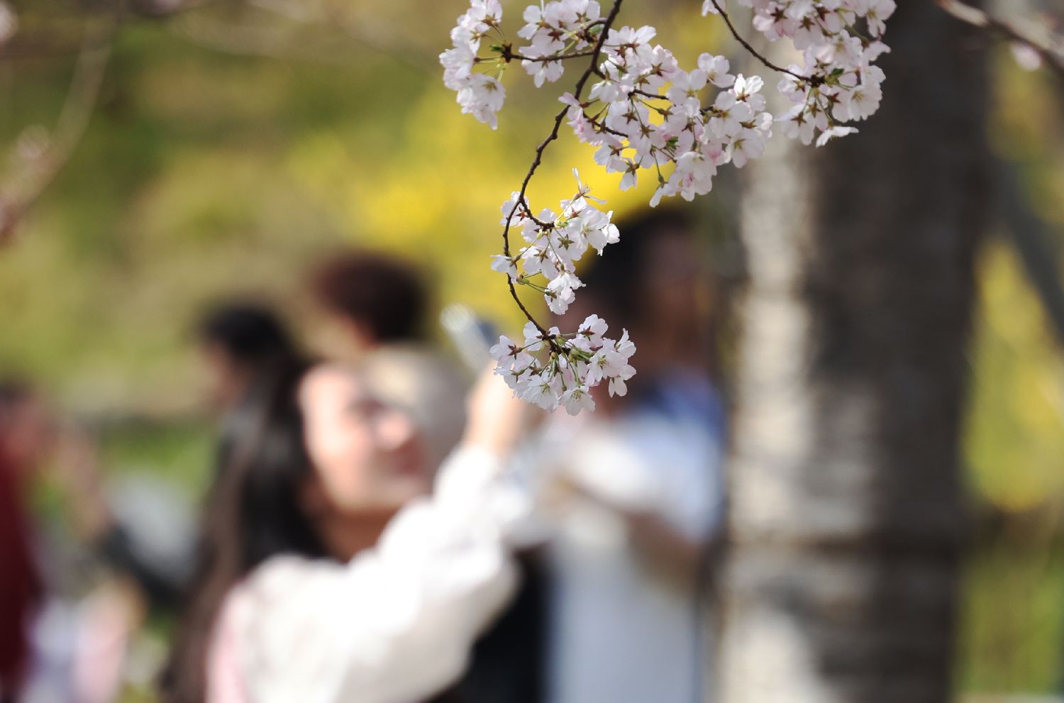 2024年3月31日,春光明媚,游客在北京玉渊潭公园赏樱花。(郑闻 摄)