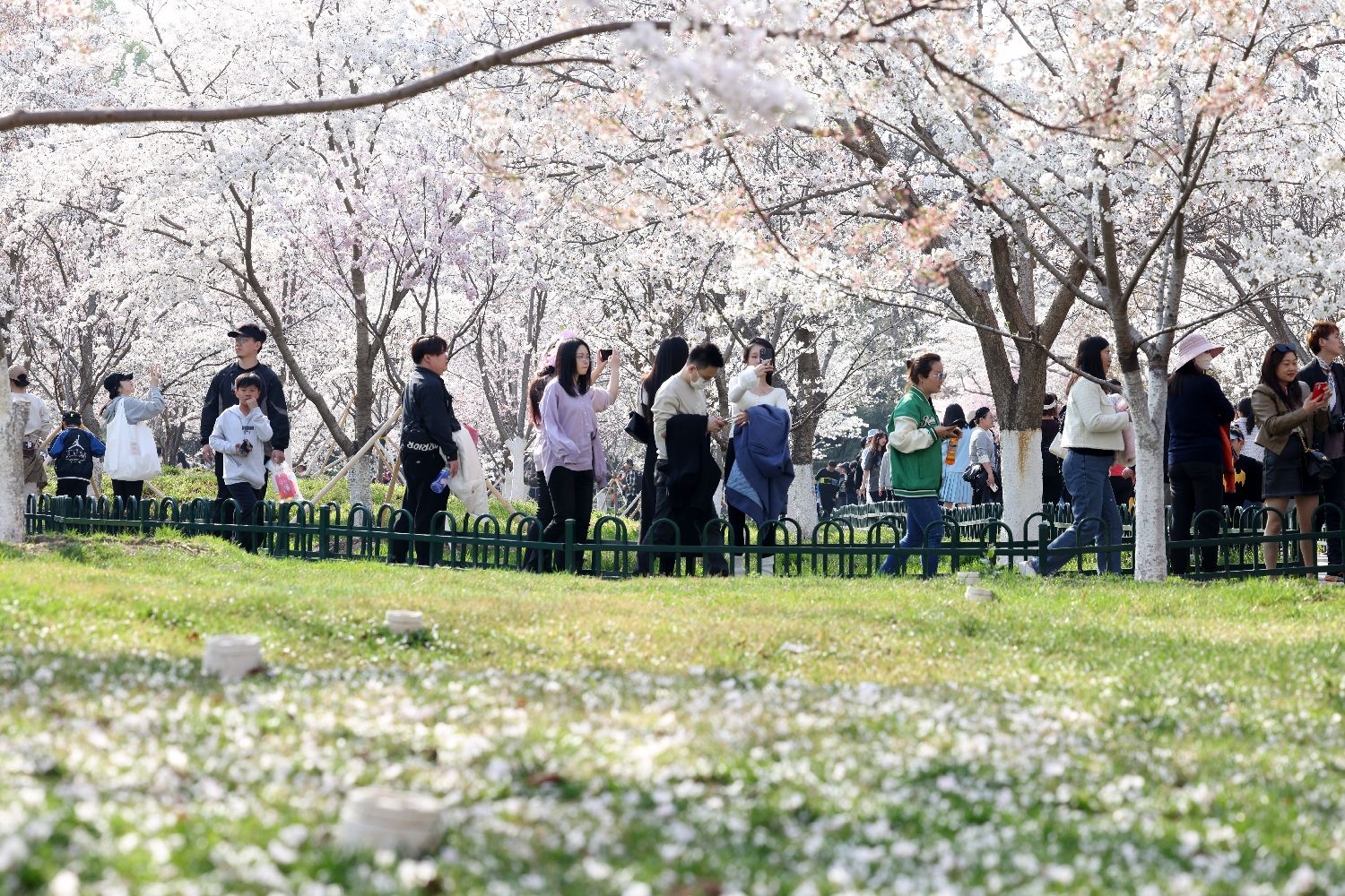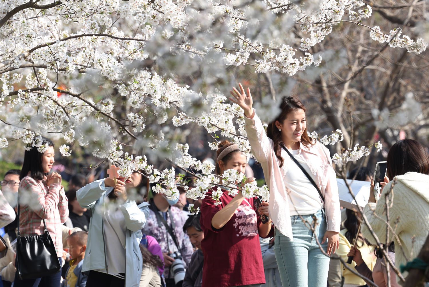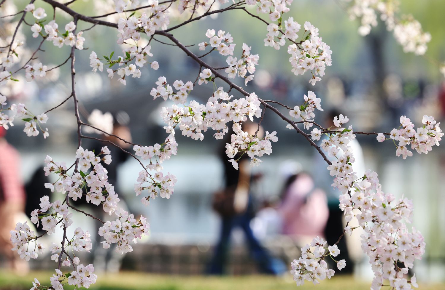 2024年3月31日,众多游客走进北京玉渊潭公园赏春踏青,尽享春日好时光。近日,随着气温逐渐回升,北京玉渊潭公园春意袭人,园内不同品种的早樱进入观赏期,形成最美的樱花季,吸引众多市民和游客前往赏樱。(郑闻 摄)