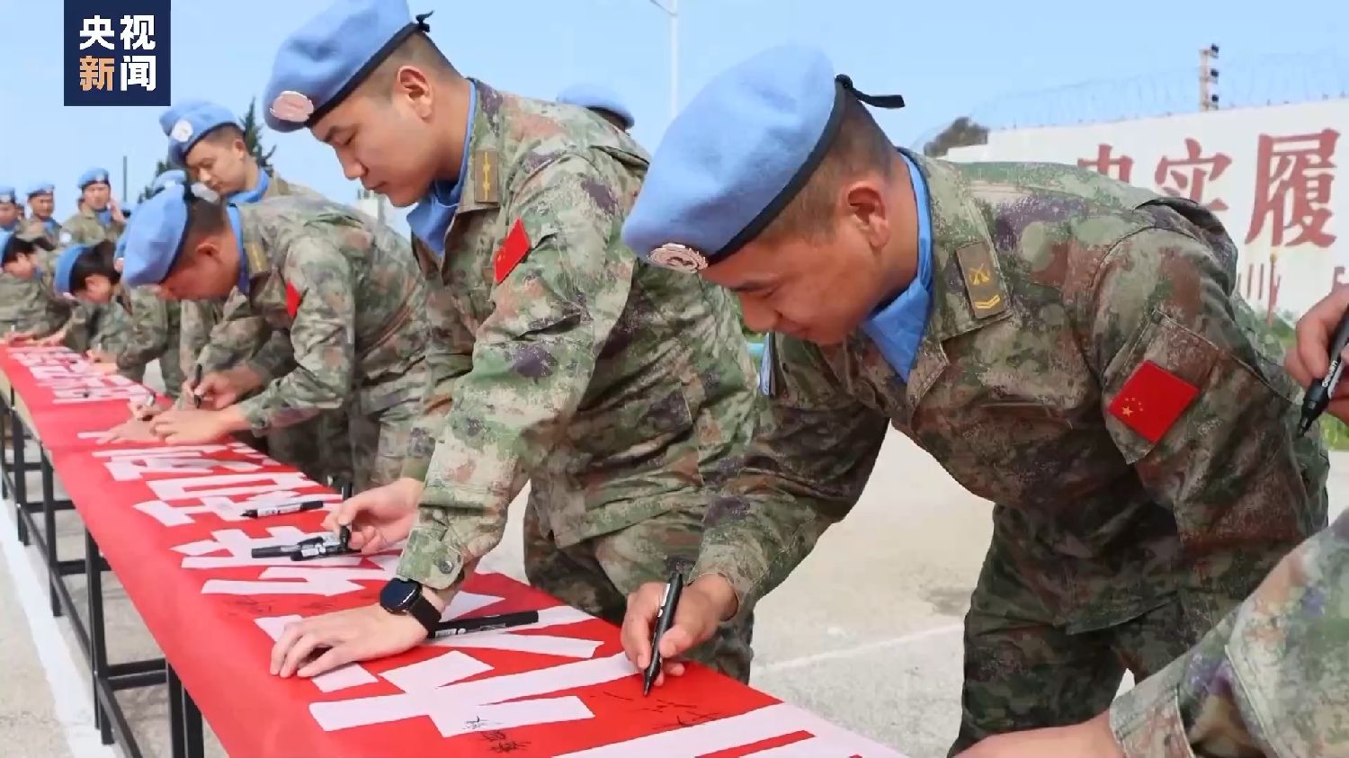 仪式最后,维和官兵纷纷在“缅怀维和英烈,担当强军事业”标语横幅上郑重签上自己的名字。