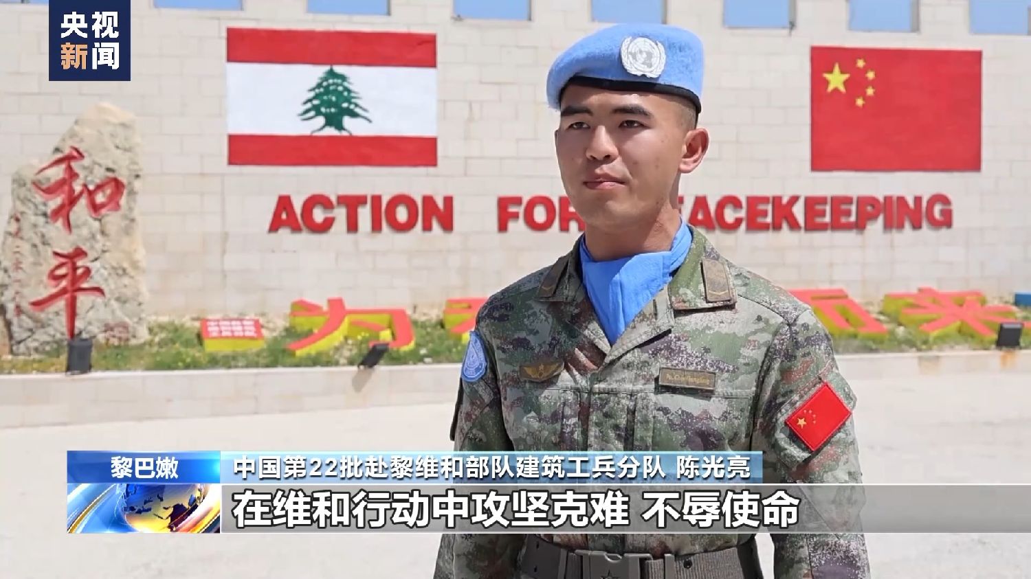 中国第22批赴黎维和部队建筑工兵分队陈光亮:我们要继承英烈遗志,在维和行动中攻坚克难、不辱使命,以实际行动发扬中国军人的蓝盔精神,践行中国维和的大国担当。
