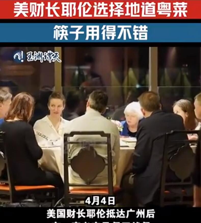 4月4日,美国财长耶伦当天抵达广东广州后,第一顿饭吃的是地道粤菜,即老字号陶陶居。报道称,耶伦筷子用得不错。