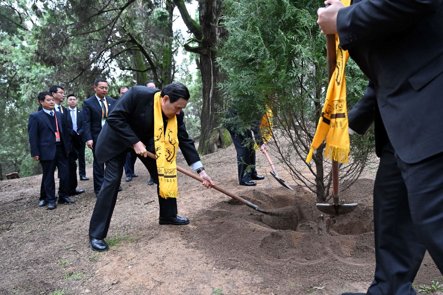 图为4月4日,马英九率台湾青年在陕西黄陵参加甲辰(2024)年清明公祭轩辕黄帝典礼。(图/中新社)