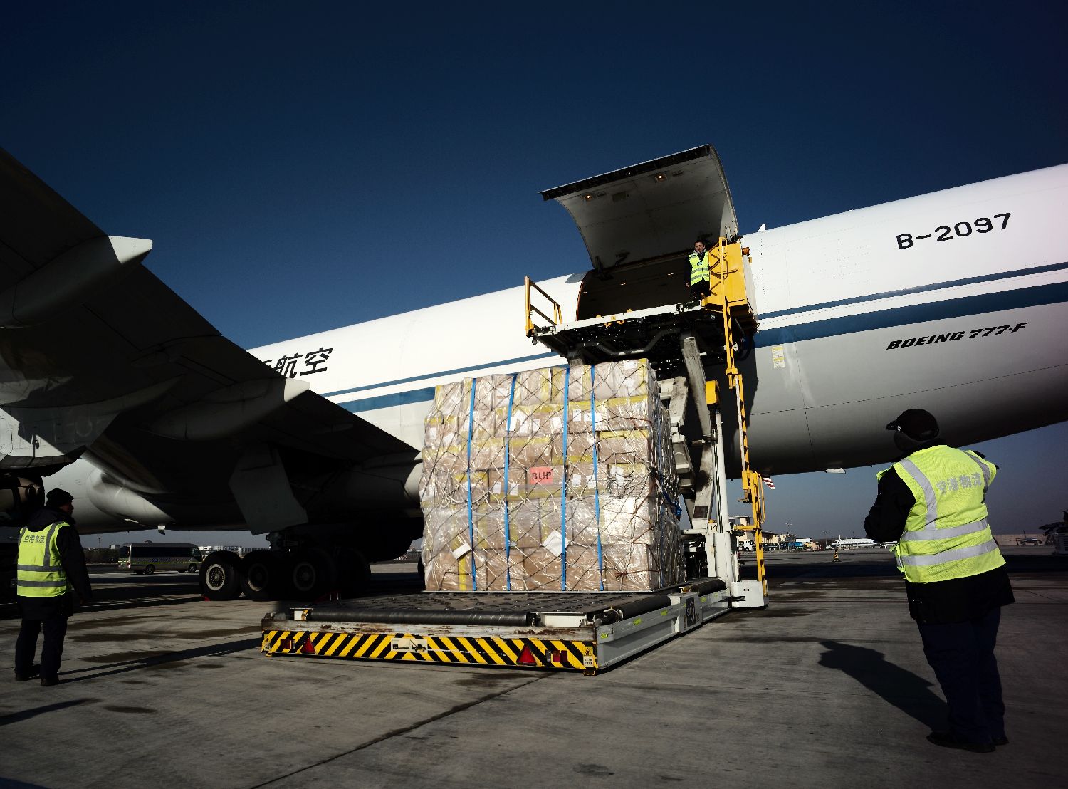 图为在沈阳桃仙国际机场拍摄的货物装机现场。(图/新华社)