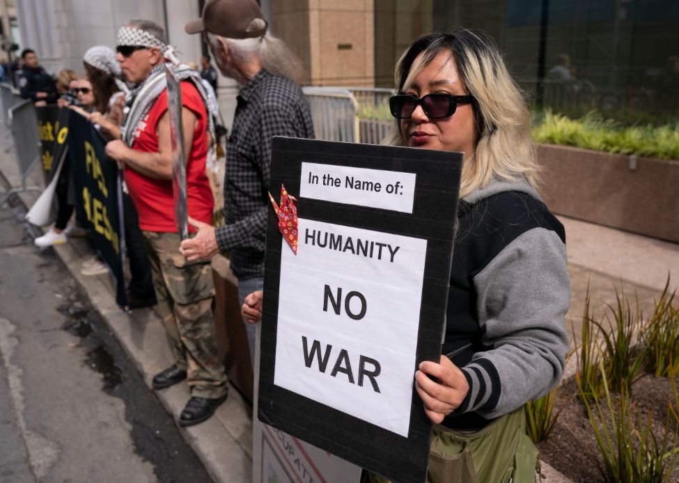 资料图为去年10月,多名巴勒斯坦支持者在以色列驻美国加州旧金山总领事馆前举行抗议活动。(图/中新社)