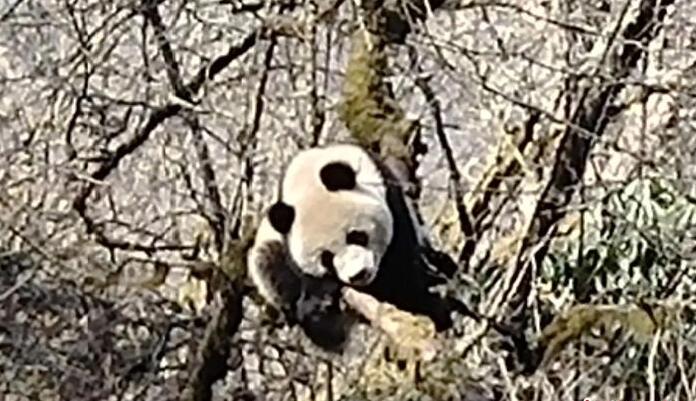 在树上玩耍的野生大熊猫。(图/中新网)